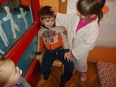 Majka od Luke nas je došla obavijestiti da je Luka u bolnici. Pošto su djeca čula da je njihov prijatelj u bolnici na njihovu inicijativu oformili smo u našoj sobi dnevnog boravka prostor liječnika. Sljedećih nekoliko dana interes djece je rastao, a odgajatelji su ga poticali pitanjima: „Što znamo o zdravlju“, “Što sve trebamo jesti da bismo bili zdravi“ itd…