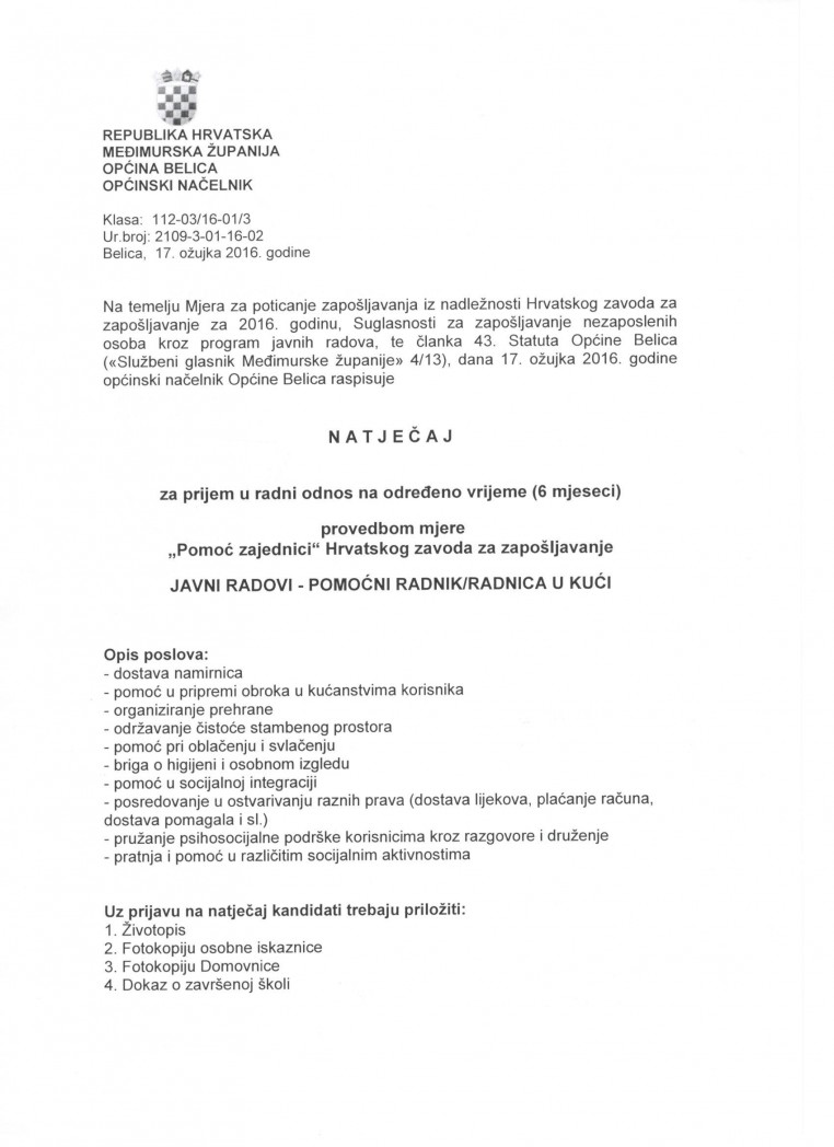 20 ožujka, 2026JAVNI POZIV ZA ISTICANJE KANdDIDATURA ZA IZBOR ČLANOVA SAVJETA MLADIH OPĆINE BELICA