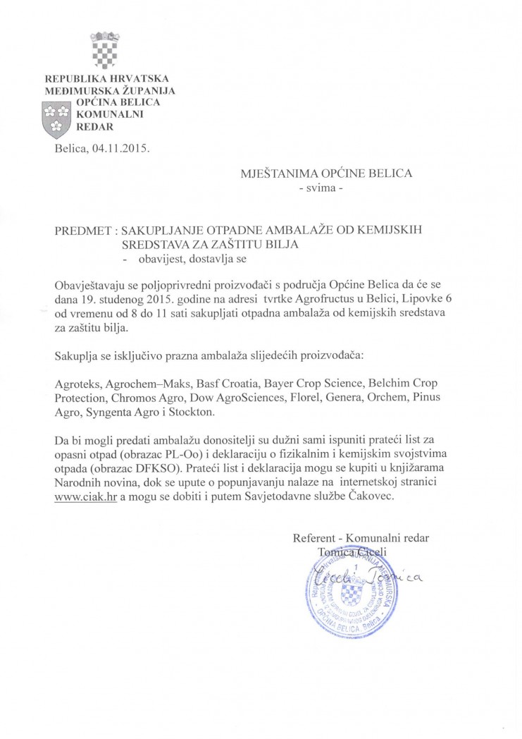 Sakupljanje otpadne ambalaže od kemijskih sredstava za zaštitu bilja