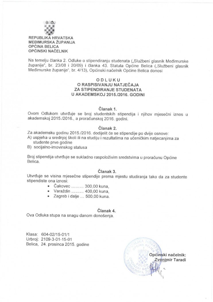 Sve važne informacije vezane uz dostavu dokumentacije dostupne su na linku: Odluka o stipendiranju